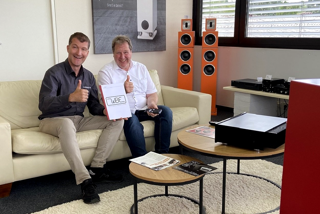 Links im Bild Thomas Feil (Orbid Sound) und rechts Walter Bret (WBE) beim Fachsimpeln und Musikhören