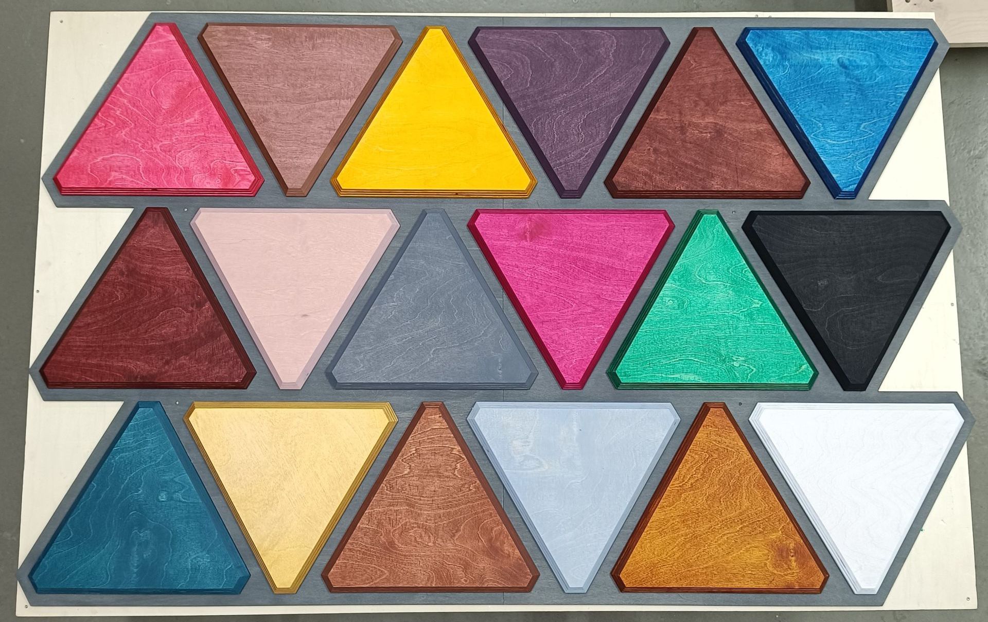 behandelt und können in allen erhältlichen Farben ausgeführt werden (pigmentierte High-Solid-Hartöle).