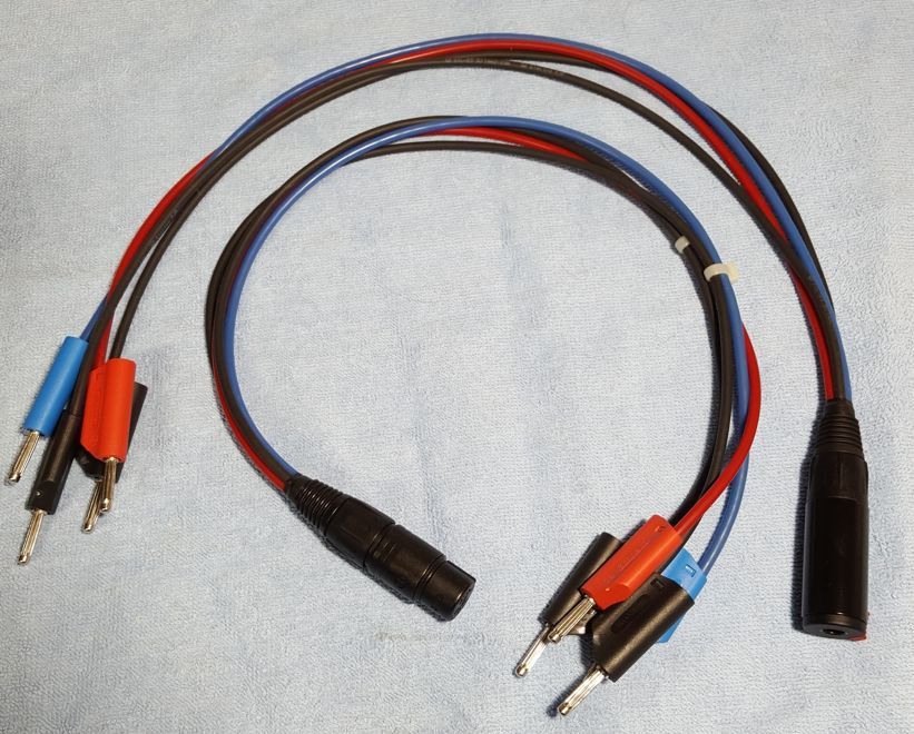 und niederohmigen, stromstabilen Federkorb-Steckern. Kabellänge ca. 50 cm.