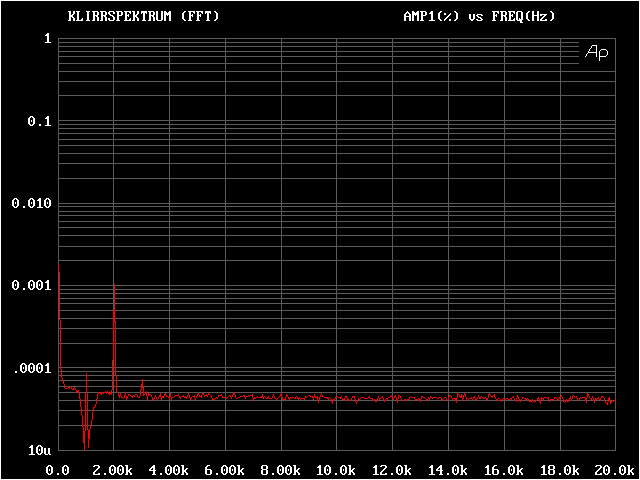 Total harmonic distortion (THD+N): 0,0035 % at 0,7 Veff into 10 kOhms
