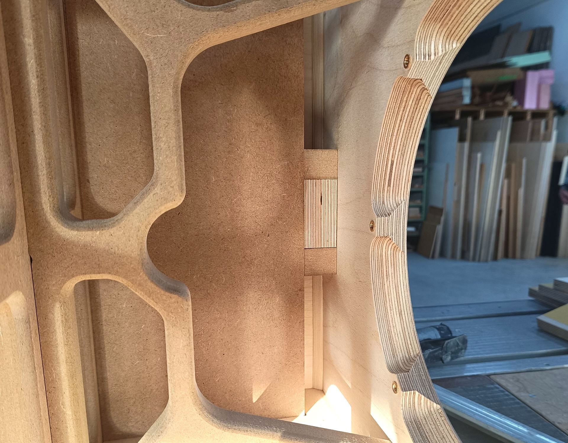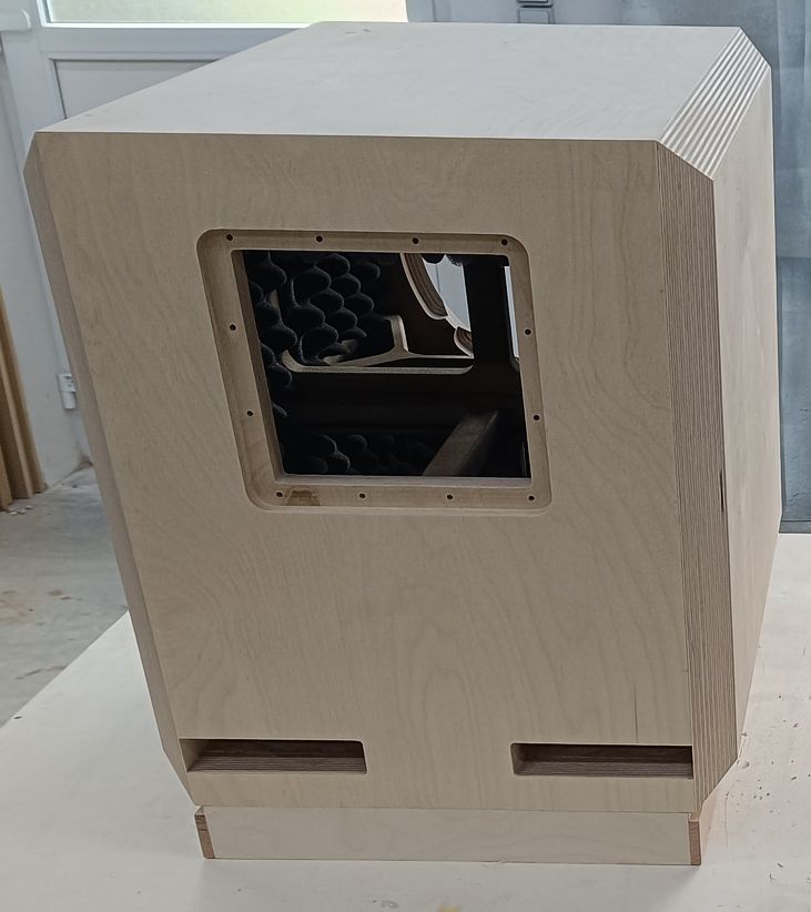 Alle Sichtteile des -Subwoofergehäuses aus schicht-verleimtem 30 mm starkem Birken-Multiplex-Holz gefertigt